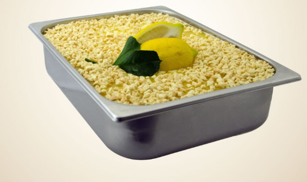 Composto por: 3,5 kg Pasta Lemon Pie + 6 kg Variegato Tarte Limão + 2 kg Granulado Tarte Limão + 1 ficha instruções + 1 segnagusto